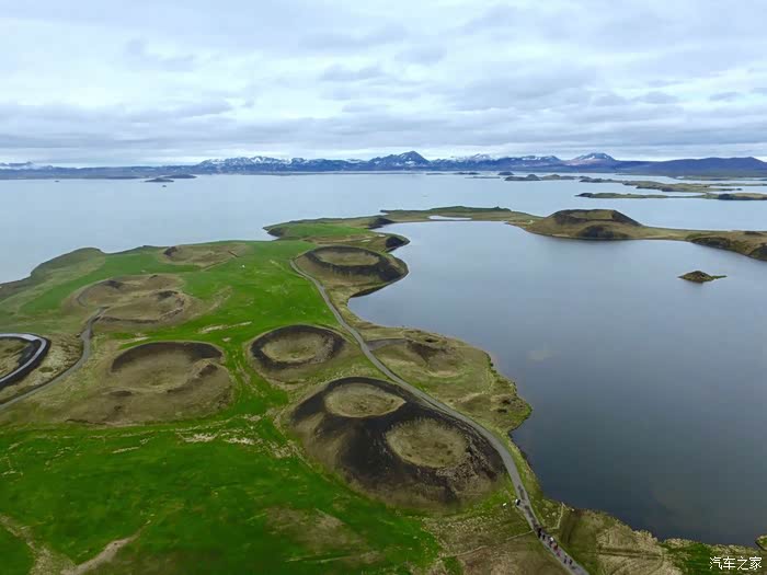 Myvatn是冰岛第四大湖,意思是“蚊蠓之湖”,繁多的蚊子也是米湖的特色,夏季蚊子尤其多,防蚊措施绝对不能少。我们由于没有任何防蚊措施,所以在米湖的经历那是相当的痛苦,蚊蠓如雨一点都不夸张。米湖还是当年美国宇航员登月前的训练的地方。照片中岸边的圆环是一个个的火山口。