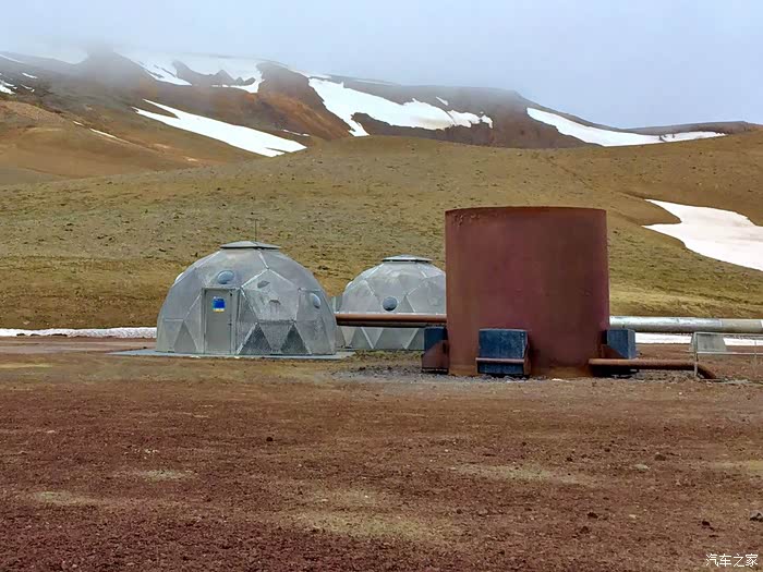 看!外星人的着陆的!哈哈哈\(^o^)/其实这里是地热发电站,也有人说这里叫做高温岩体电站。用专家的话术说这里是大西洋洋中脊型板缘高温地热带,地表地热活动强烈,因此冰岛人在此建立了克拉布拉地热田电站。