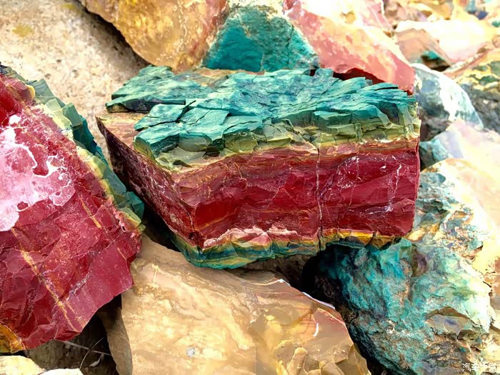 这些石头要是放在国内,分分钟就被全部哄抢而光了,因为他们正是国人现在很喜欢的绿松石、孔雀石、战国红……
