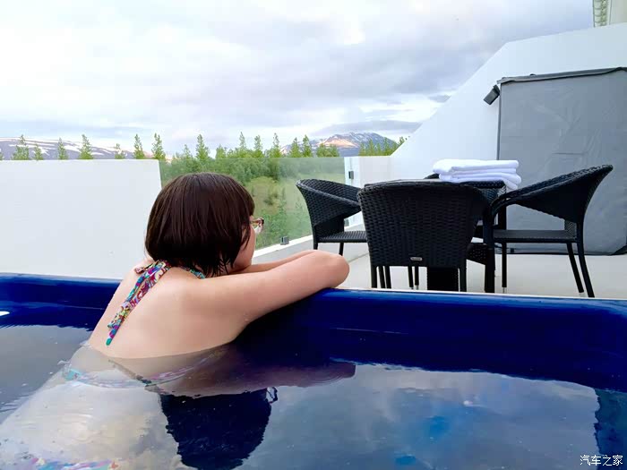 当晚来到冰岛的第二大城市阿克雷里,其实面积也就是故宫加上景山公园那么大的镇。我们入驻的酒店公寓提供全天候的室外私汤温泉。白天在米湖没泡够晚上可以尽情享受——边泡温泉,边看美景,边听着音乐,当然还少不了零食和啤酒……简直是无比奢侈的幸福!
