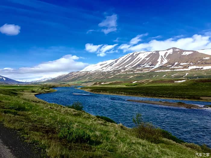 返回阿克雷里我一路上边走边拍。今天傍晚的天气格外好,难得的晴天,所以所有的景致都变得鲜亮起来。就连蓝天的颜色也有层次,深蓝浅蓝……真是美呆了!