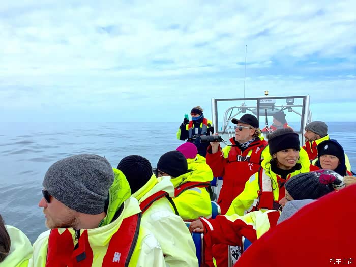 我们乘坐的观鲸冲锋舟上,貌似只有我们俩没戴帽子,北极圈冰冷的海风真的都把我俩冻傻了。下了船有好一段时间感觉思维和动作乃至感觉整个世界都好像是慢半拍似的,就像电影里的慢镜头o(~口~)o……Tips:蓝鲸露出水面换气的全过程我们已经编入视频了,详见视频吧o(^_^)o。