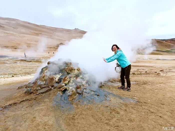 Myvatn Hverarond的一个天然蒸汽孔,好奇心驱使感受了一下蒸汽温度,温度怡人估计在这做个面部护理会棒棒哒!当时我们YY了一下,如果此景出现在天朝……被护栏围起来是必须的,而且护栏四周还会挤满人手举相机、DV、自拍杆……的游客。