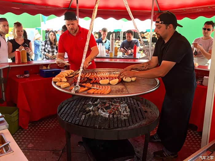 恰逢周日,赶上周末市场,街道上忽然冒出很多摊位,有点像我们的早市,但是干净有序很多。头回看到这样烤肠的,他们卖的是热狗,生意不错!
