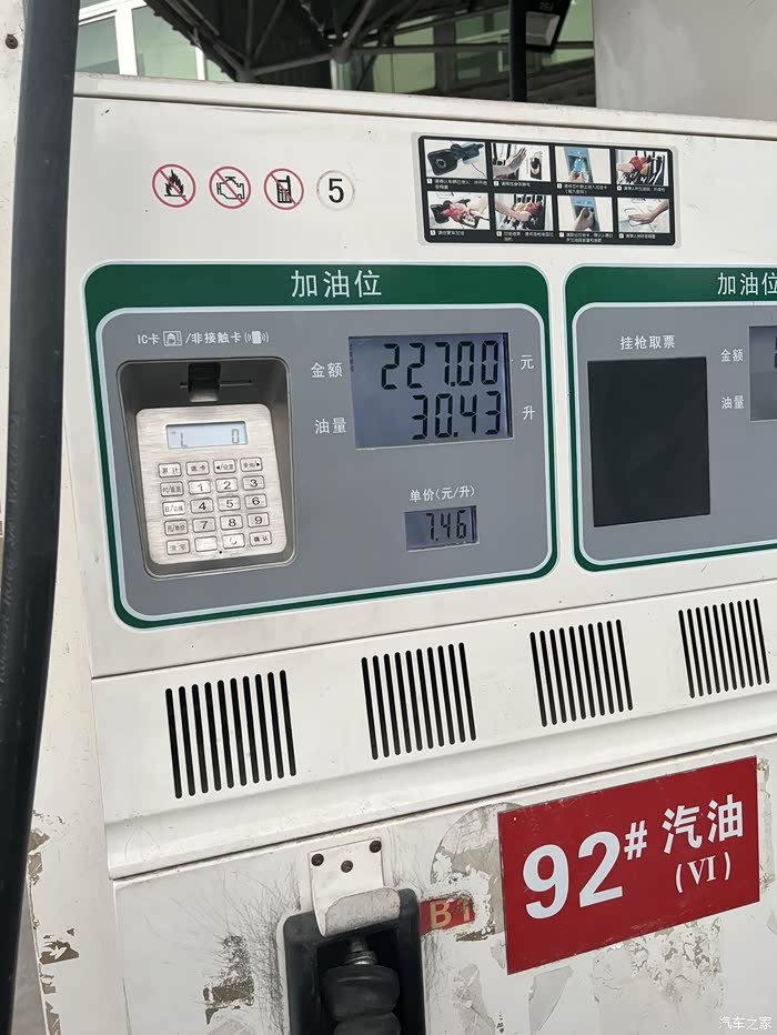 加油:92#,135.43升,共1064元,平均油费7.85元/升,油箱容积55升,目前大约还剩一半
