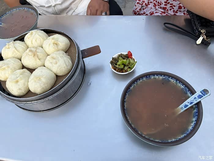 第三天早上7点半出发,路过某小镇吃的东北早餐