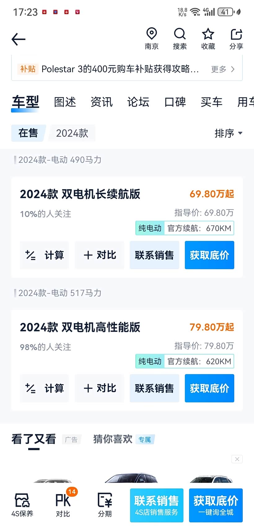 极星3这个价格为啥不上路特斯?价格差3万,少了100匹马力。个人认为合理价格应该在50-60w