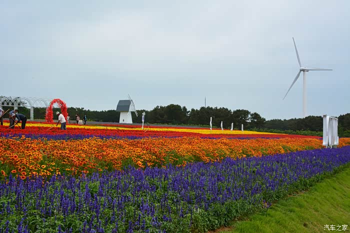 漫步园内,天空湛蓝,五色花海连绵起伏。在花海中央,旋转的风车、大大的“LOVE”和“跳动的音符”等标志构成的秀美景色让游园参观者流连忘返。