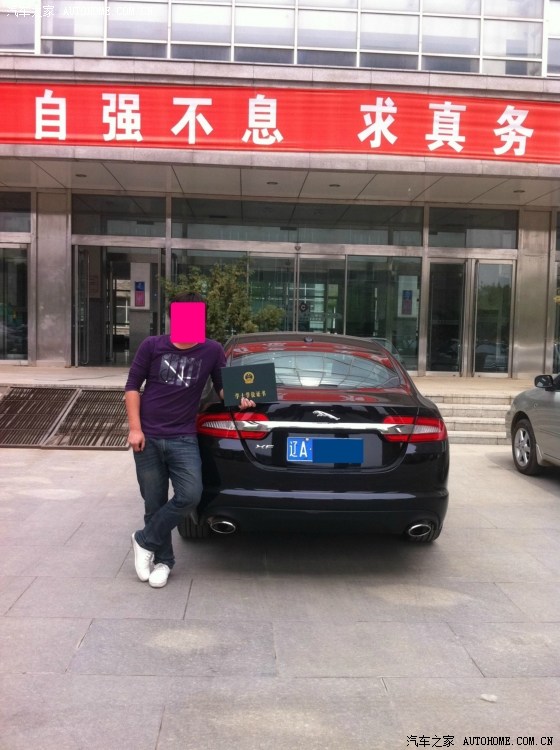 还有本人比较宅出一次门也不容易,正当挣扎是先去奔驰还是宝马,奥迪4S店时,那天出去买点卡归来,看到门口停了一辆09款的XF,觉得这车挺漂亮,回家上网一查才60多W,而且还小改款了,加了日间行车灯。一直觉得捷豹是跟保时捷一样买了就要吃泡面的品牌,没想到还有这么亲民的价格还有漂亮的外形。看完马上致电捷豹路虎4S店,一打听正好有一辆现车,而且还有优惠,想都没想点卡也不充了直奔4S店,到了就看到这辆墨紫晶的现车,当时看完现车的感觉就是奔驰宝马奥迪都是浮云了,只有我心爱的Panamera的外形能与之抗衡(纯当时个人观点),但是价格才是小P的一半。当时心里就定下来就它了。而且旁边那那美女销售一个劲告诉我沈阳就两辆现车了,而且马上也不接受预定了,要11月以后才接受(当时也不知道是要换发动机)。但是当场我还是忍住了,留了个电话合计等他给我打电话我还能再砍砍价。到家以后心情久久不能平静啊,魔兽也没心思玩了,公会活动也不跟了,就合计XF了,大概上网看了一下XF的信息,知道发动机老了点,油耗大点。但是为了那外形和品牌我忍了。好不容易熬到第二天就盼着销售给我打电话,可是快到中午了手机也没响,当时合计就怕那现车被人提了就主动出击了。现在想想那时候还是年轻啊,沉不住气,多花多少冤枉钱。当初功课没做好,之后看了论坛各大大提车的价格,眼泪真是哗哗的,现在码字想起来眼睛还是湿润的。到了4S店,果然没讲下多少钱,算了不墨迹了,刷卡走人。车子也没绑红绳,也没照相。就这样第一次买车就这么草率的结束了。