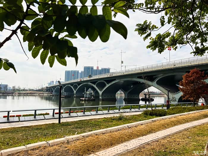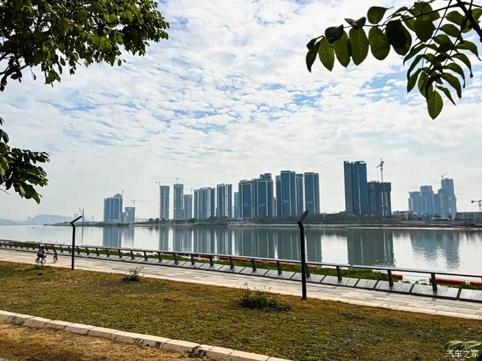 拍完照片,我就自己躺在二排,把车门打开,边玩手机边欣赏着江景,这感觉真心安逸!
