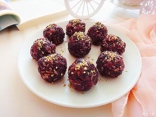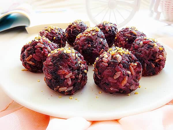 最近主食迷上它,营养饱腹又低脂,一周至少做3回,轻食餐必备!这个饭团用了很简单的材料,但是都非常营养的;主要材料用了三色糙米,三色糙米是以红米,黑米,糙米混合一起,这三种食材的纤维含量和各种营养元素含量都比较高,能帮助脂肪的消耗。 三色糙米煮饭比较干和散,口感不是很好,所以许多人不爱吃,但我今天加了糯米就改善了这个问题。饭团里还加了黑芝麻和紫菜,黑芝麻更是春天里应该每天都吃的,补钙、健身都是极好的;紫菜中含有大量的营养价值,含有很多膳食纤维,可以保持肠道的健康,每天吃都可以;我用一点盐调味,微微的咸口,好吃有食欲。
