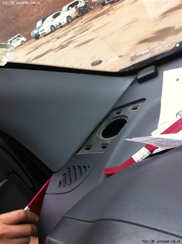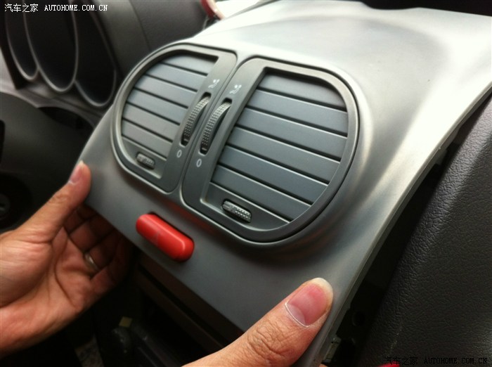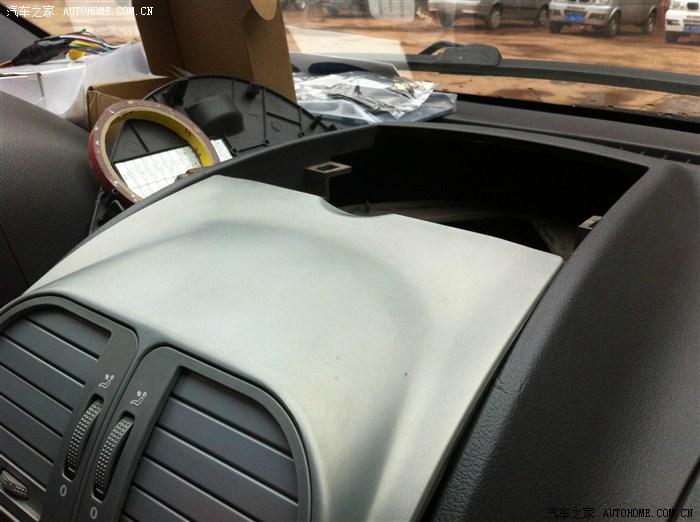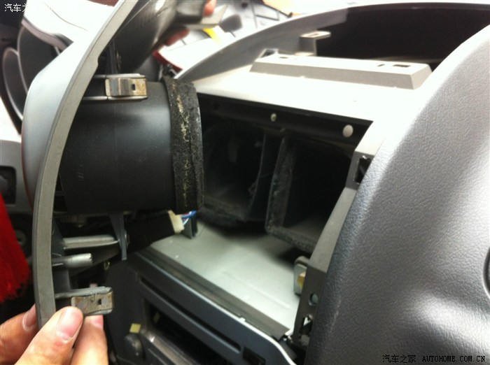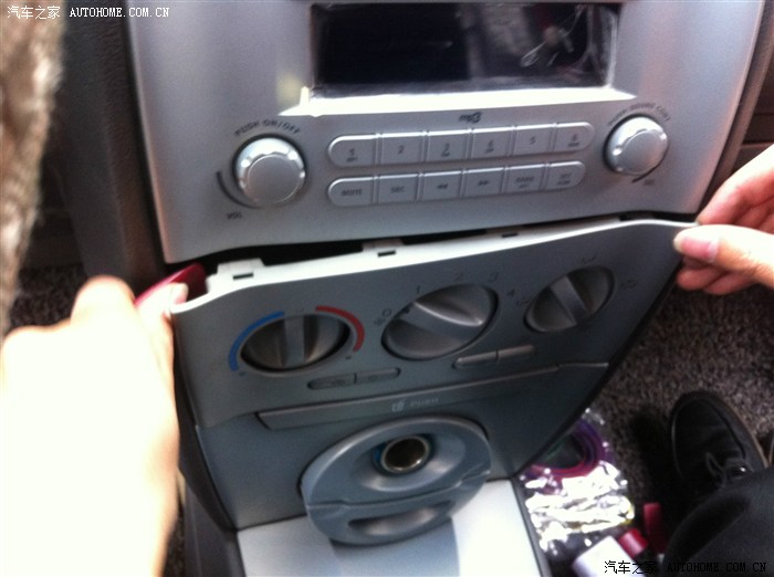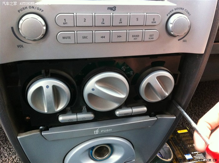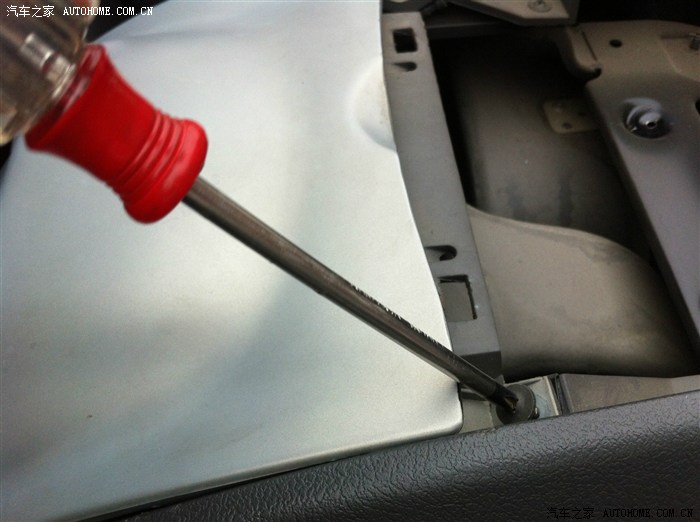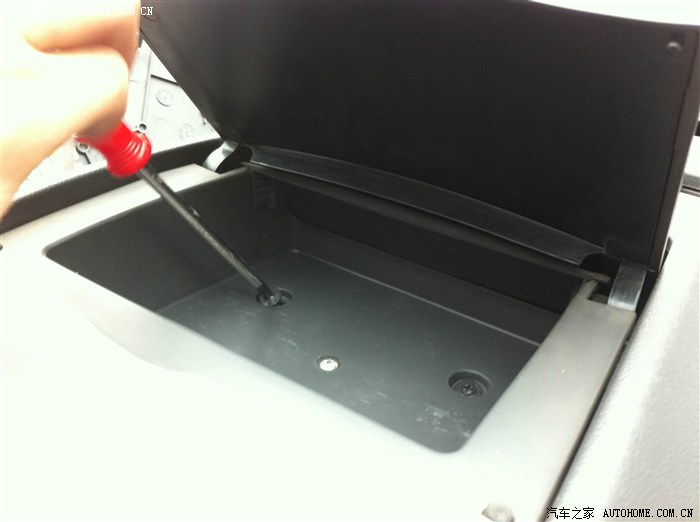拆掉中控台上的置物盒,里面有两颗螺丝,然后用撬板(拆装工具)撬开。