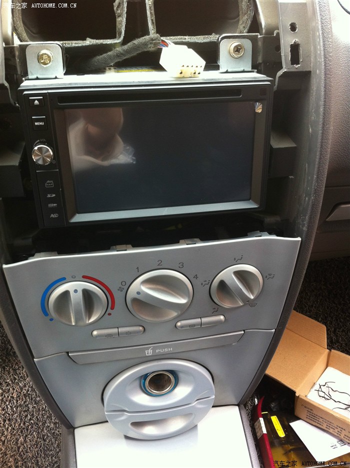 DVD一体机的专用面板可以最后在安上去,内圈还是需要贴一圈3M胶哦。。。上装好过后的效果图