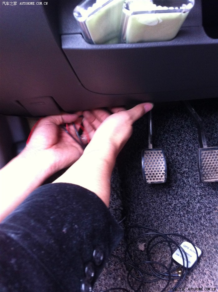 GPS天线直接从下面接到中控台面板挡风玻璃下的角落位置就可以了,然后把接收器底部贴上3M胶粘在中控台上。