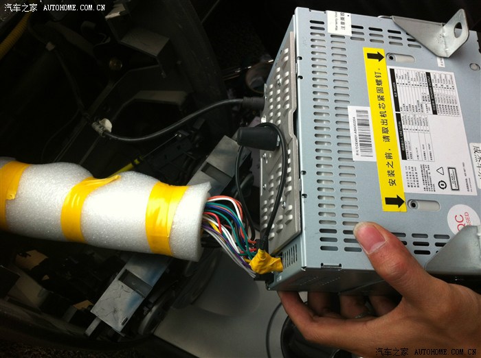 然后,把后面的所有插头接上,这个时候我考虑到异响的问题,所以把后面接的线用一体机包装箱里面的软泡沫包上了一圈,这样就不用单位线束来回摇摆撞击的声音了