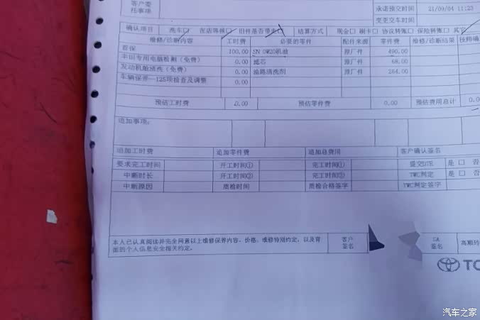 时间总是走的很快的,不经意间就没啦,亚洲龙到我们家也有段时间了,平时上下班用来代代步,天不好的时候接送一下孩子,用下来,一家的使用感受都不错,家里人给的反馈都很好,非常不错的一个代步车,油耗也不高,国庆出去走个亲戚跑了个高速,高速上也比较省油。车子是一个很能提高人生活幸福感的物件,没事开车搞个自驾游,惬意自在的很,这不比大包小包赶公交赶高铁舒服,而且时间长了,公交都不想挤了,日常生活也快离不开我的宝贝龙了。一直用车肯定对车多少有些损耗,这个时候对车子的养护就显得尤为重要。国庆前店里的客服就打电话通知首保了,当时觉得里程不多就没去往后拖了拖,正好国庆出了趟远门,回来想去,被一些事情耽误了,这几天有空就联系客服,让安排了保养。到那儿的时候就有人出来接待,很热情,然后大概检查一下车子情况,就送去车间给师傅保养了。你可以选择在休息区等,也可以区车间看看保养过程,我嘛坐不住,就去车间看师傅保养了,也学到点小知识。一些必做的项目,比如:清理空气滤芯,空调滤芯,发动机舱,灯光,底盘,车胎等等,师傅检查的可仔细了,完全没有敷衍做事,很让人放心。师傅做事真的可以放心,车胎里的小石头都没有放过。安全检查也是很有必要的,车子安全人才安全,人安全比什么都好。首保的工时和保养用的机油配件都是免费的,后续即使过了亚洲龙的保养周期,和师傅打听了一下,费用也不高,应该是可以接受的。不过没经历过,不做太多分享,但这次保养很满意。