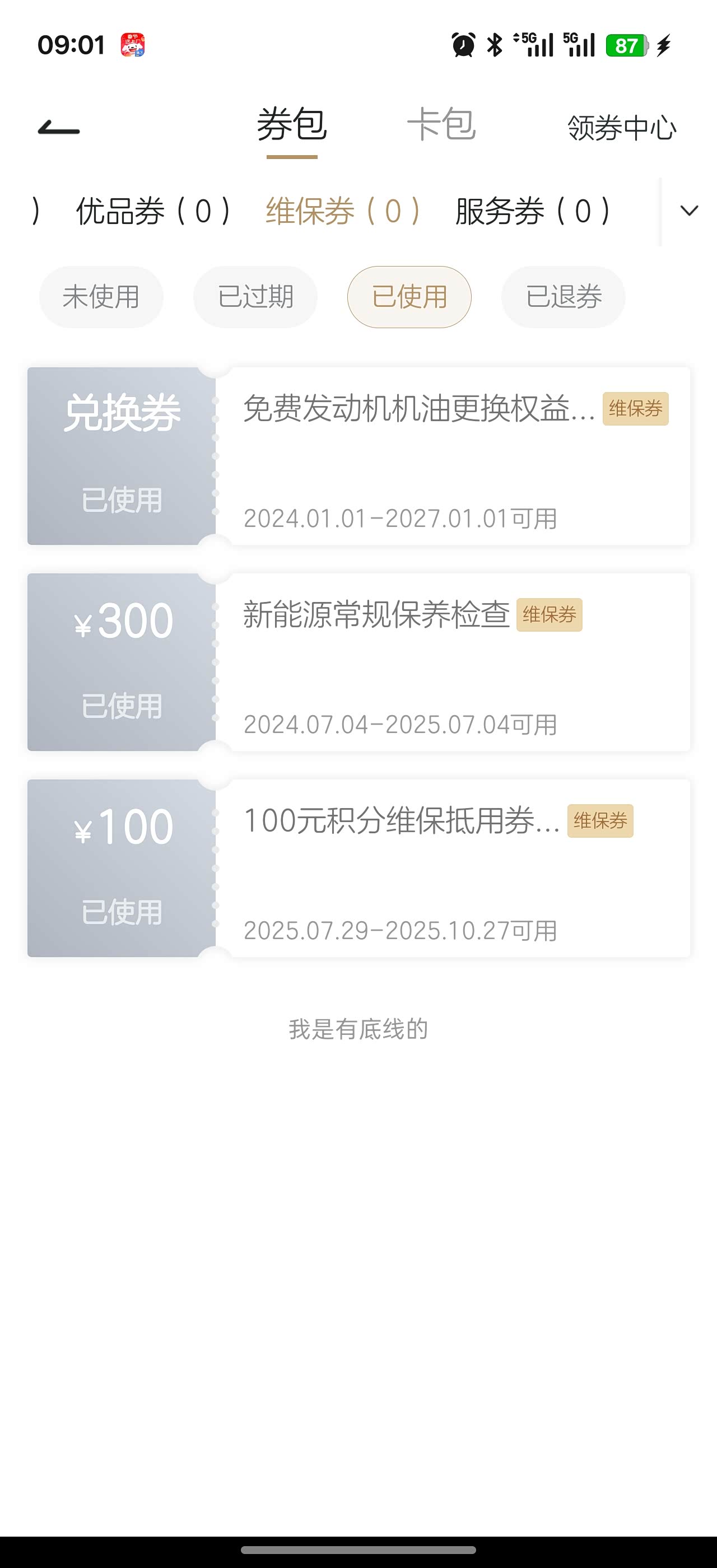 还有一个小窍门,就是在APP的“券吧”里看看有没有保养优惠券或者抵用券。有时候会有打折券或者赠送工时费的活动,能省下不少钱。毕竟年底花钱的地方多,能省一点是一点嘛。