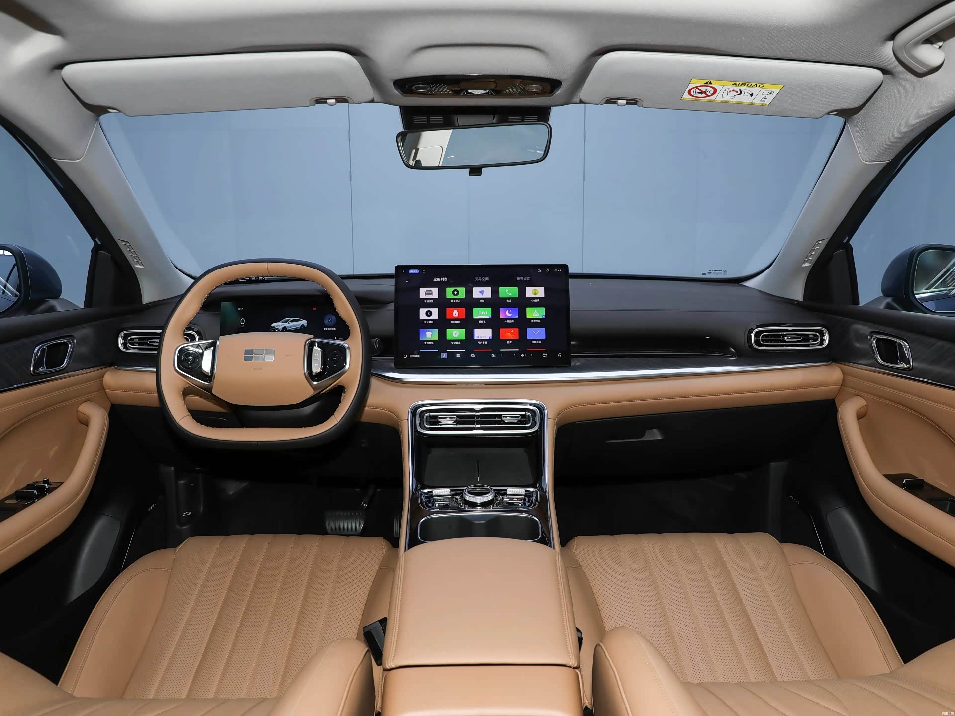 车内是14.6英寸中控屏+10.25英寸仪表盘的双屏组合,显示清晰,操作流畅。中控台简洁实用,保留必要物理旋钮,操作更便捷。空调出风口采用“涟漪回纹”设计,细节处尽显东方美学。门板、座椅精致绗缝,品质感满满。