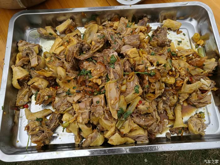 ,说错了“是秘制柠檬鸭”出炉了,凉拌的哦,酸中带辣,去除了鸭肉的腥味,锁住了鸭肉的鲜味,加上是土鸭,饲养时间长,肉入口后有韧性,有嚼头,酸辣味打开了味蕾,使人欲罢不能,果然美味。
