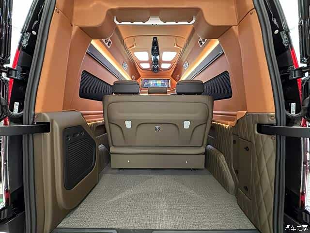 车身侧面,流畅且富有张力的线条从车头一直延伸至车尾,勾勒出优雅的车身轮廓,贯穿式腰线不仅增加了车身的层次感,还营造出一种向前俯冲的运动姿态,19寸锻造轮毂或熏黑大尺寸轮毂,造型独特,与整车风格相得益彰,进一步强化了它的运动属性。车身尺寸:5341*2296*2375(mm) 轴距:3300mm 内置高度达到了1.7m 可站立行走。