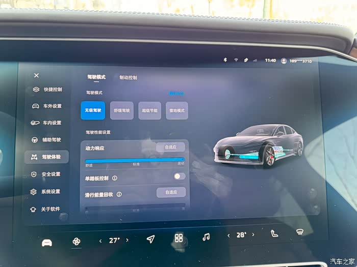 首先我最感兴趣的是她的驾驶体验,有过混动车的电动驾驶体验后,我对电动车尤其期待,果然F7没有让我失望,动力模式的无极调节,制动、转向的各种模式随心所欲的选择,驾驶乐趣真是没话说。我还特意好好感受了单踏板驾驶模式,这个模式极具驾驶乐趣,我可以完全通过油门踏板来操纵车辆,甚至在下地库的大角度斜坡上,也能让车辆自动停止,太有趣了。