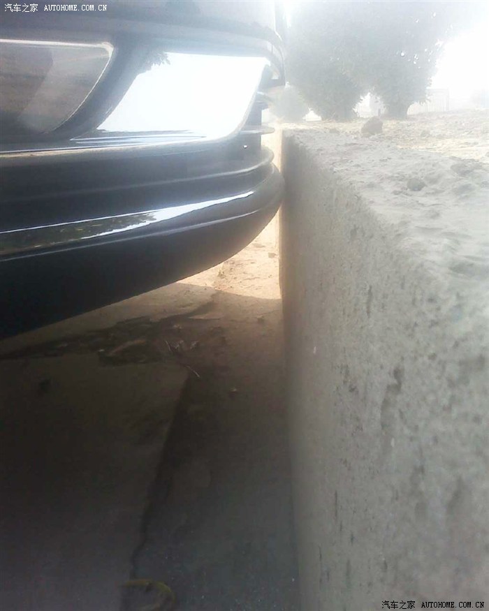 提完新车第一次到单位的现场,差一毫米碰上花坛