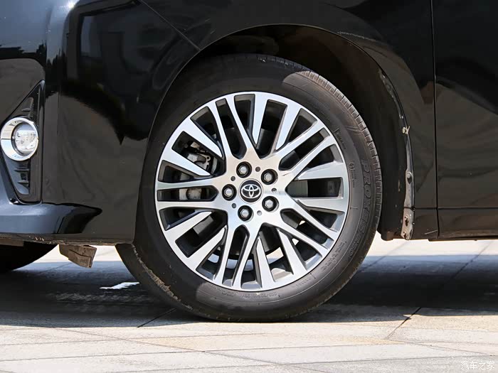 这台车配备的是235/50 R18的轮胎,尺寸不算小,不过由于埃尔法的车身太厚重,还是有种头重脚轻的感觉。