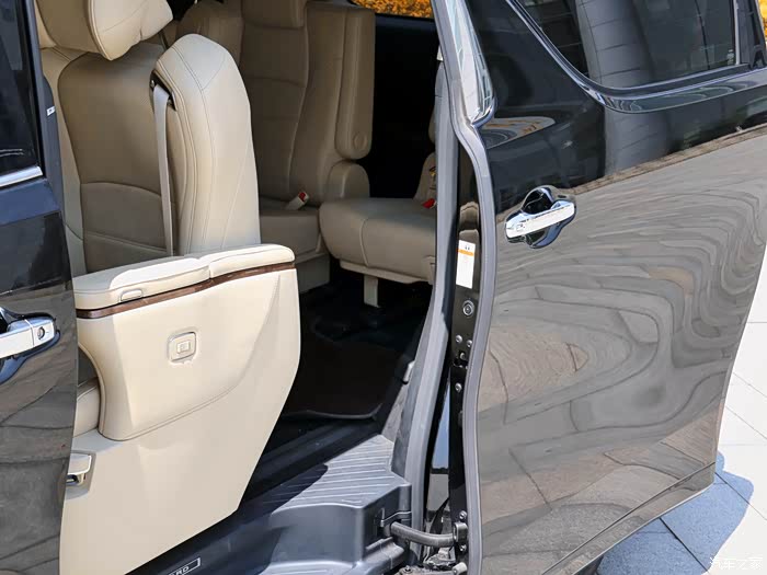 第二排侧挡风玻璃前方的拐角是埃尔法很有标志性的设计之一,这样设计对第二排敞亮通透的感觉也没什么影响。
