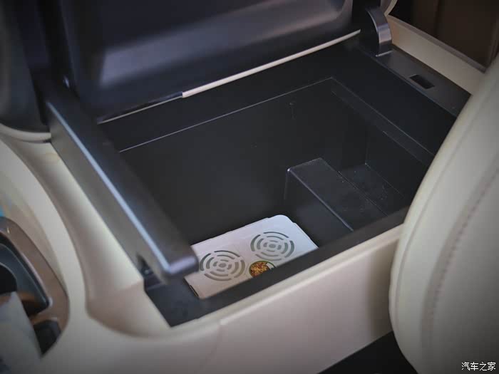 前排扶手箱后面有个小储物盒,用来放数据线什么的还是挺合适的。