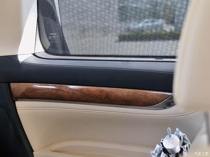在豪华感的营造上,第三排也是不含糊的,木纹饰板和真皮都没有缺席,并且也配备了手动遮阳帘。