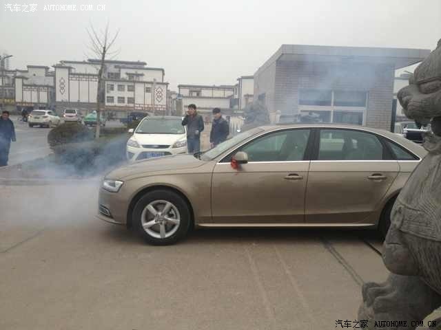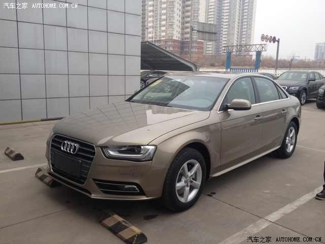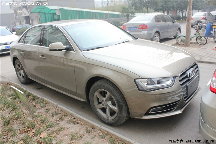 再去看看新3系,换代换得很成功,它的发动机,后驱,造型犀利,加长轴距,都太棒了,但是由于价格优惠力度很小,也太高调,开这车感觉自己是暴发户(3系车主勿喷哈),而且算下来超预算多好多,所以也只能是一辆买不起的车啦。。。。之后除了未上市的翼虎,还有那蒙迪欧之外,其他都没相中,日系车就不考虑了,本人是爱国党!!因为年底要用车,所以新款车也就等不起啦,,最终还是回来看我们的A4,就是优惠比较郁闷,过了几天刚好之前那奥迪4S店发了个短信过来说周末有个团购,买车的车立马心切了,到了周末,我们去谈了谈,结果大失所望,所谓团购就是多送6000保险,和一点小礼品,关键是还没有现车,说一周内到,无奈整个洛阳也就这么一家4S店,去别的地方买,又必须上当地牌照,转籍也挺麻烦的,由于提车心切,索性就不折腾了,直接订了35舒适版的,加起来总共优惠2W,交了一万定金!比起那些优惠12个点的,我真是羡慕嫉妒恨啊,,但是又很无奈,,,车子颜色当时也就红色和达喀尔金2种可以选,红色新款A4及少量哦,很少见的,,但是考虑长远问题,我们选择了金色, 之后就是等车时间,,,在家里焦急等待了3天,终于等到了4S的电话,说车到了,那晚真是太兴奋了,,大家懂得。!!!