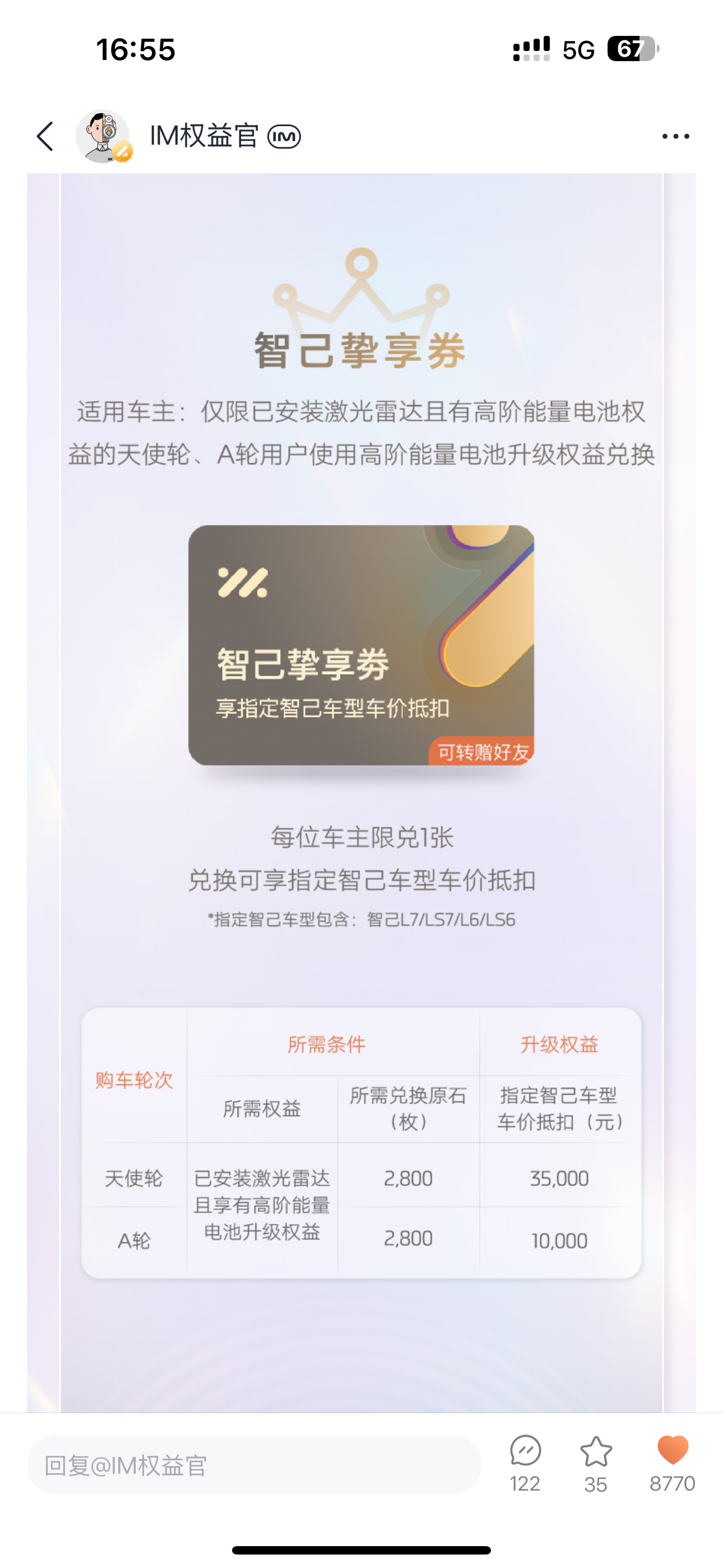 现阶段,智己开放了原石兑换,有1-7万元的购车券,非增换购的朋友可以通过这个渠道去折价购买哦,再省个1k-1W不等。