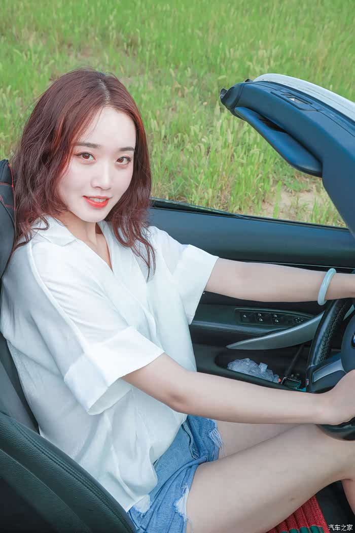 蔚蓝天空下的白色车身,带着些清凉气息,扭动着身子的曼妙舞姿,沉浸在互动中的***,小姐姐与敞篷跑车初次相见,兴奋,着迷…