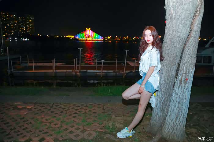 城市的喧嚣衬托着此处的小姐姐放空和娴静,镜头的作用就是捕捉夜幕下的倩影。