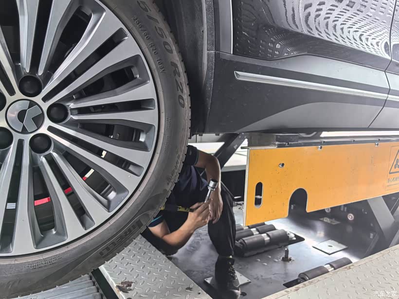 没几分钟,换电专员就赶到了,让我先下车,看他带上头盔,拿上工具,钻到了车底下,小哥一顿猛操作,终于把电池的螺丝卸下来了,且完成了换电。