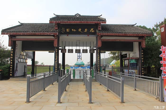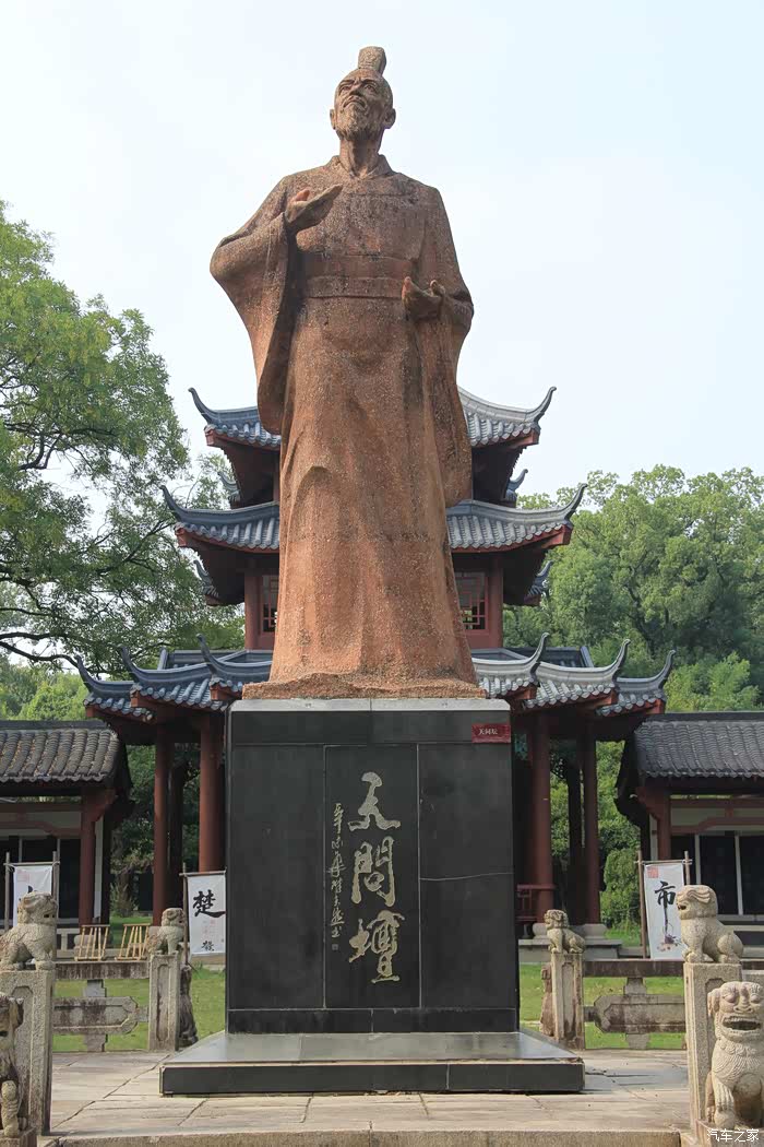 二是屈子文化园。从君山岛出发,沿高速驱车70多公里,耗时约一个半小时抵达。途中在高速服务区简单用过午饭,顺带为车辆更换了机油,稍作休整便继续赶路。不料导航指引至西门时,只见到紧闭的大门与“此门封闭,入园请走东门”的告示,作为国家4A级景区且承载屈原文化的核心载体,竟无清晰的路线提示,着实令人费解。无奈之下绕行6公里多前往东门,持身份证入园后,每人花费10元搭乘观光车游览。