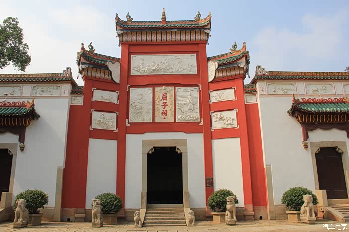 百度:屈子祠,又名屈原庙,为祭祀屈原之祠庙。屈子祠始建于汉,重修于清乾隆十九年(公元1754年),建筑占地1354平方米,坐北朝南,为单层单檐砖木结构,三进三厅,十四耳房,前有三座砖砌大门,祠正门牌楼墙上绘有13幅屈原生平业绩和对理想追求的写照浮雕。2001年,屈子祠被国务院批准列入第五批全国重点文物保护单位名单。