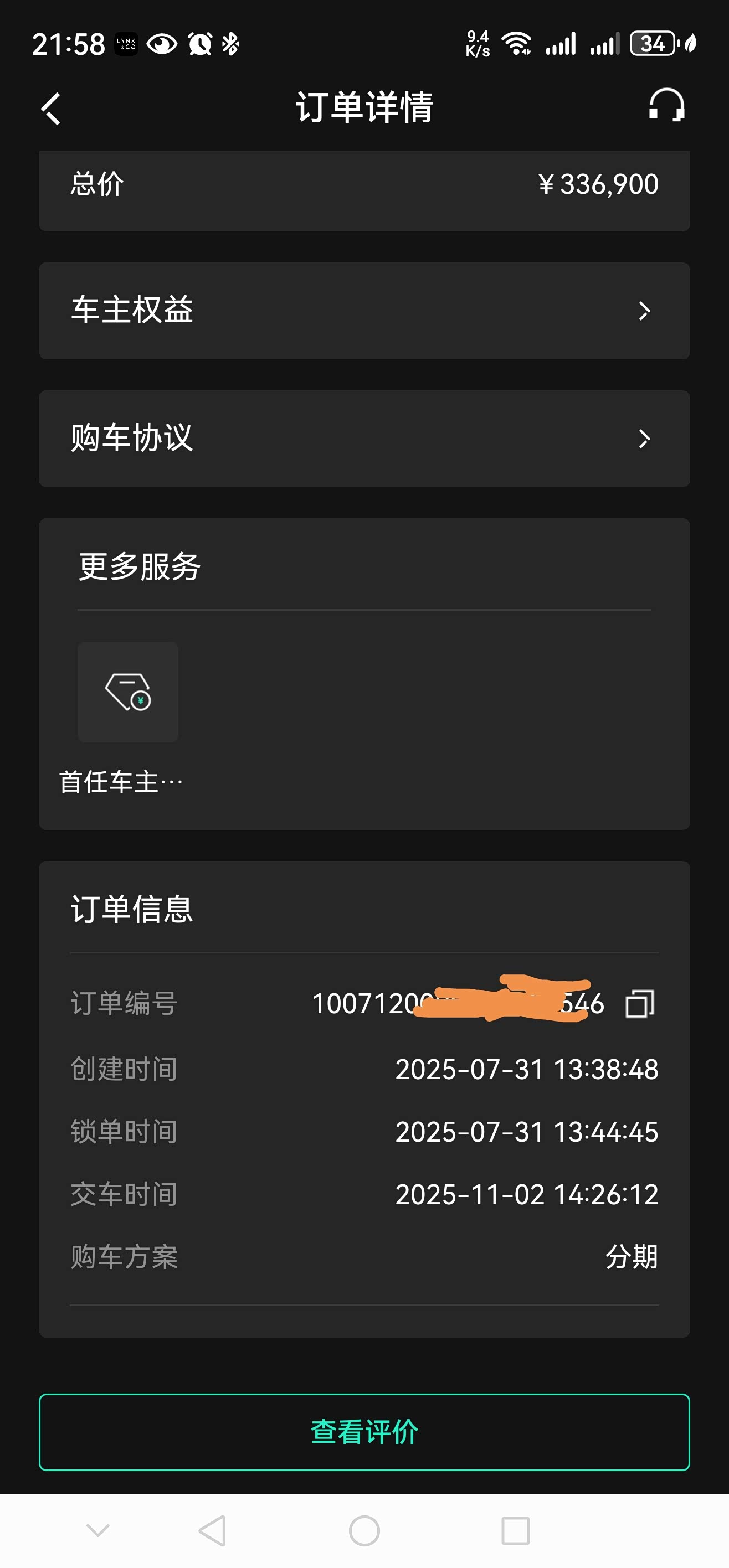 提车过程是漫长的,有个小遗憾, 等车是真的煎熬,足足90多天,等到没脾气。不过11月3号提车到现在,开了200公里,就觉得一切等待都是值得的。