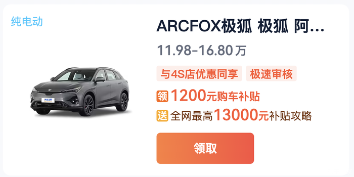 购买车前可先领汽车之家1200元补贴,与政府补贴、厂家和4S店补贴不重叠,是额外给用户赠送的!