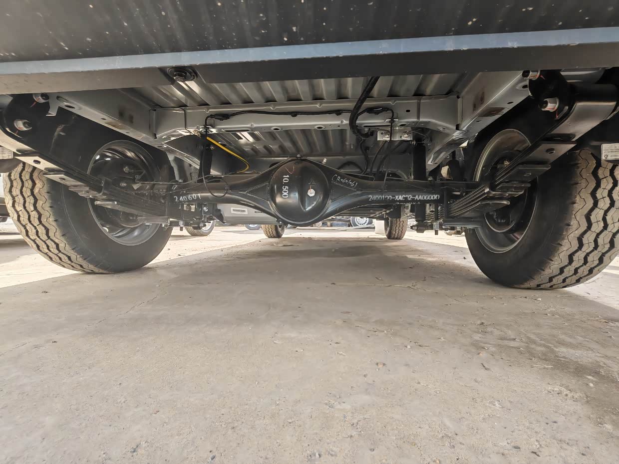车轮毂包采用方形设计,搭载195R16轮胎,承载力达1.4T。拉人载货都没问题。