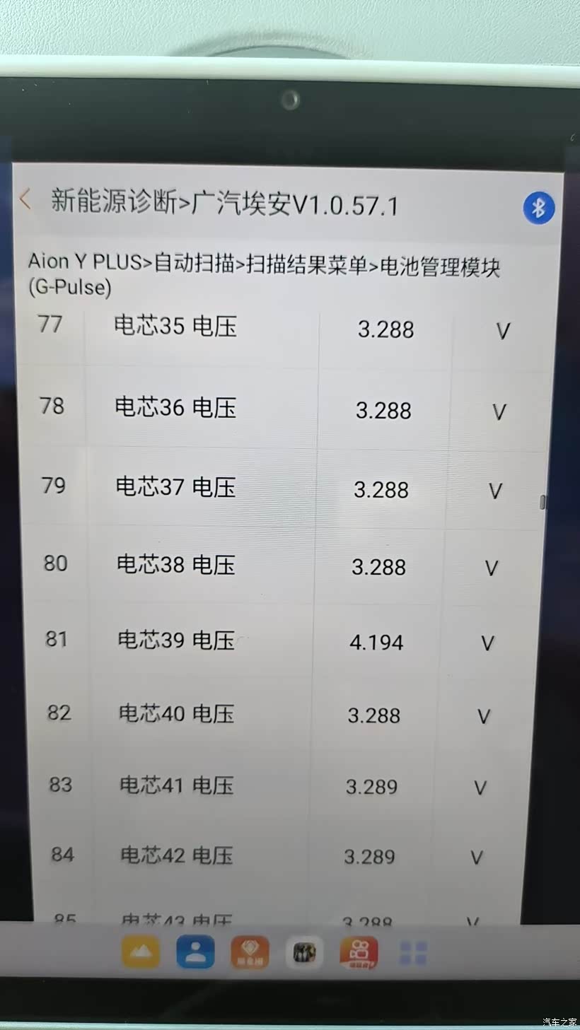 看楼主自己odb蓝牙读取的单节电芯的电压,39的4.19电压应该是三元电池,但是看其他3.28电压的单节又是铁锂的电压,压差过大过载对安全影响很大,还是去4s店里抓紧检测。