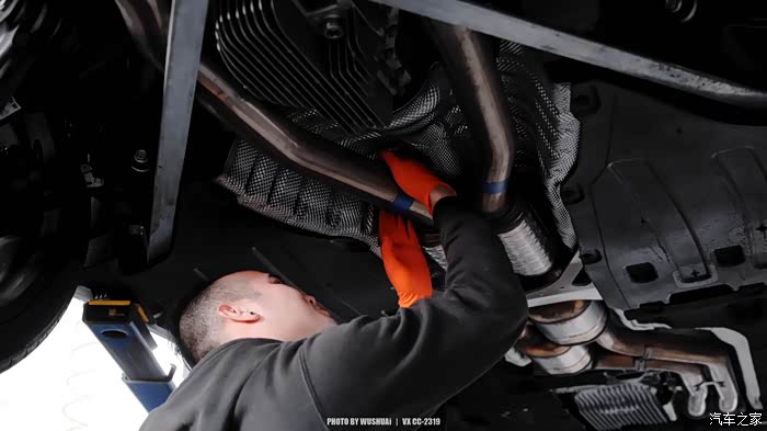 原厂的排气吊耳也安装到新排气上,预装好尾喉在排气上
