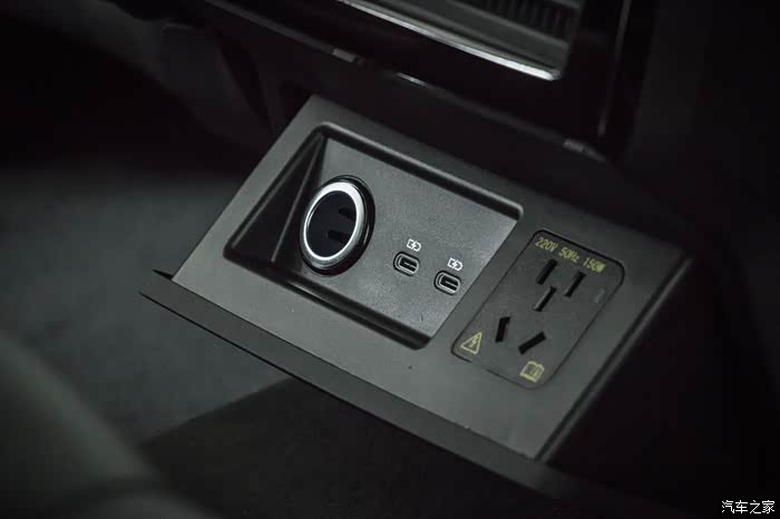 2022款途锐的后排除了常规的12V点烟器接口,还配备了两个Type-C接口以及220V充电接口,方便在游玩途中给笔记本电脑、相机无人机等设备充电。