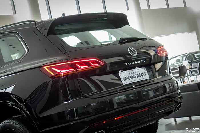 车尾造型层次丰富,车顶的尾翼中央集成了高位刹车灯,尾灯分列左右,没有采用流行的贯穿式设计,看上去很低调,而大众LOGO下方的TOUAREG字母,表明了这款车型的身份。