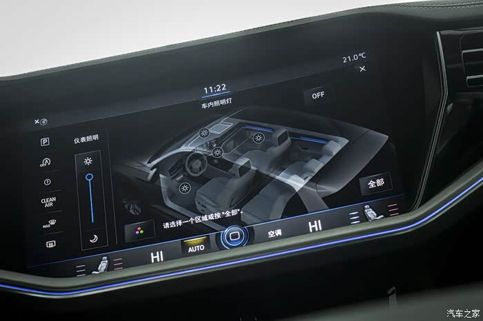2022款 3.0TSI 锐尊版配置方面:21英寸铝合金轮毂、夜视系统、整体主动转向系统、方向盘电动调节、方向盘换挡/加热/记忆、前排座椅按摩、副驾驶座电动调节、后排座椅加热、丹拿14扬声器音响、后排独立空调。