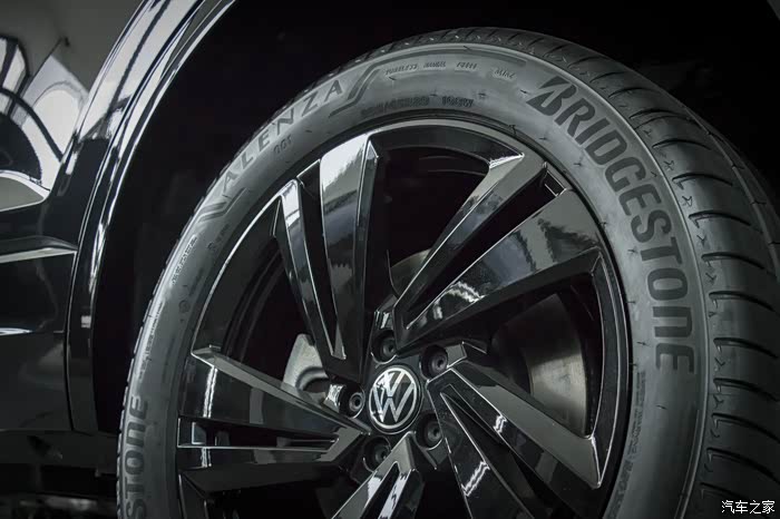 实拍车型配备的是20英寸多辐式造型轮毂,风格显得比较时尚,与之搭配的是255/55 R20规格的普利司通轮胎。