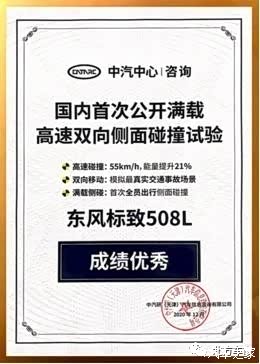 2020年,在中国汽车技术研究中心碰撞试验室,508L迎来了全国首次公开,满载高速双向侧面碰撞试验,TA不负众望以“优秀成绩”通过测试,赢得了业界如潮好评。