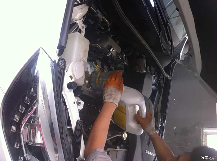 准备换入的新机油,一共加了一大桶+一个小桶里倒了一点