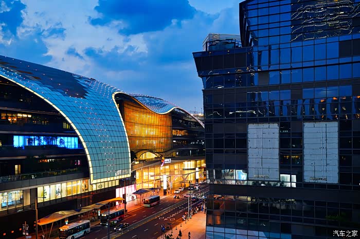苏州中心商场的贝壳状屋顶被誉为“未来之翼”,将整个商场空间纳入翼下,在灯火的衬托下,显得更加光彩夺目。