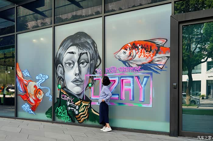 这幅巨型二次元漫画吸引了媳妇的目光,我粗看还分不出男女,还是媳妇观察仔细,说戴耳环的一定是女的了,哈哈。